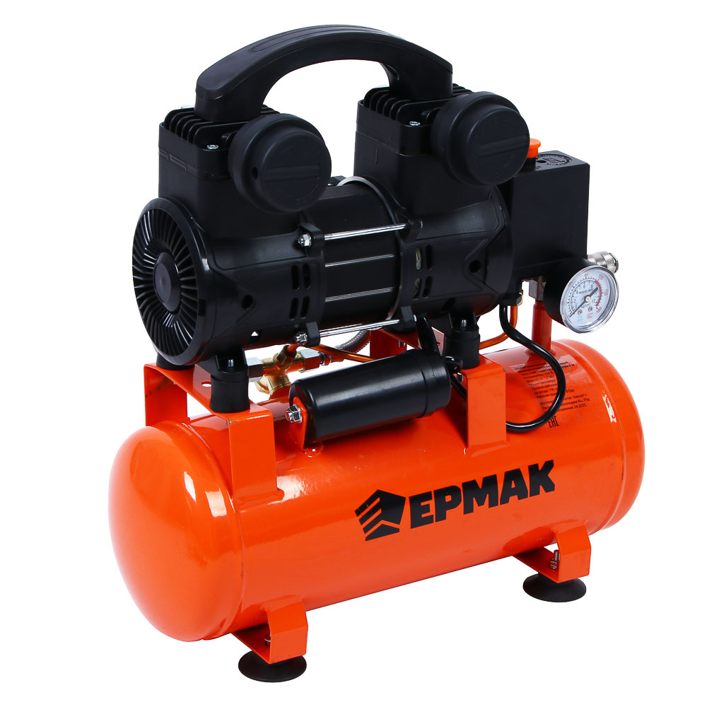 ЕРМАК Компрессор пневматический безмасляный 10л с пистолетом и шлангом 5м