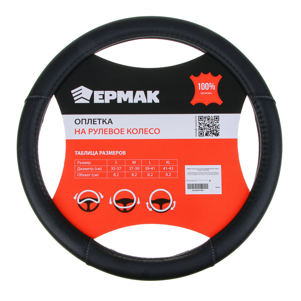 ЕРМАК Оплетка руля, вставка перфорированная, черная, экокожа, черный (М)