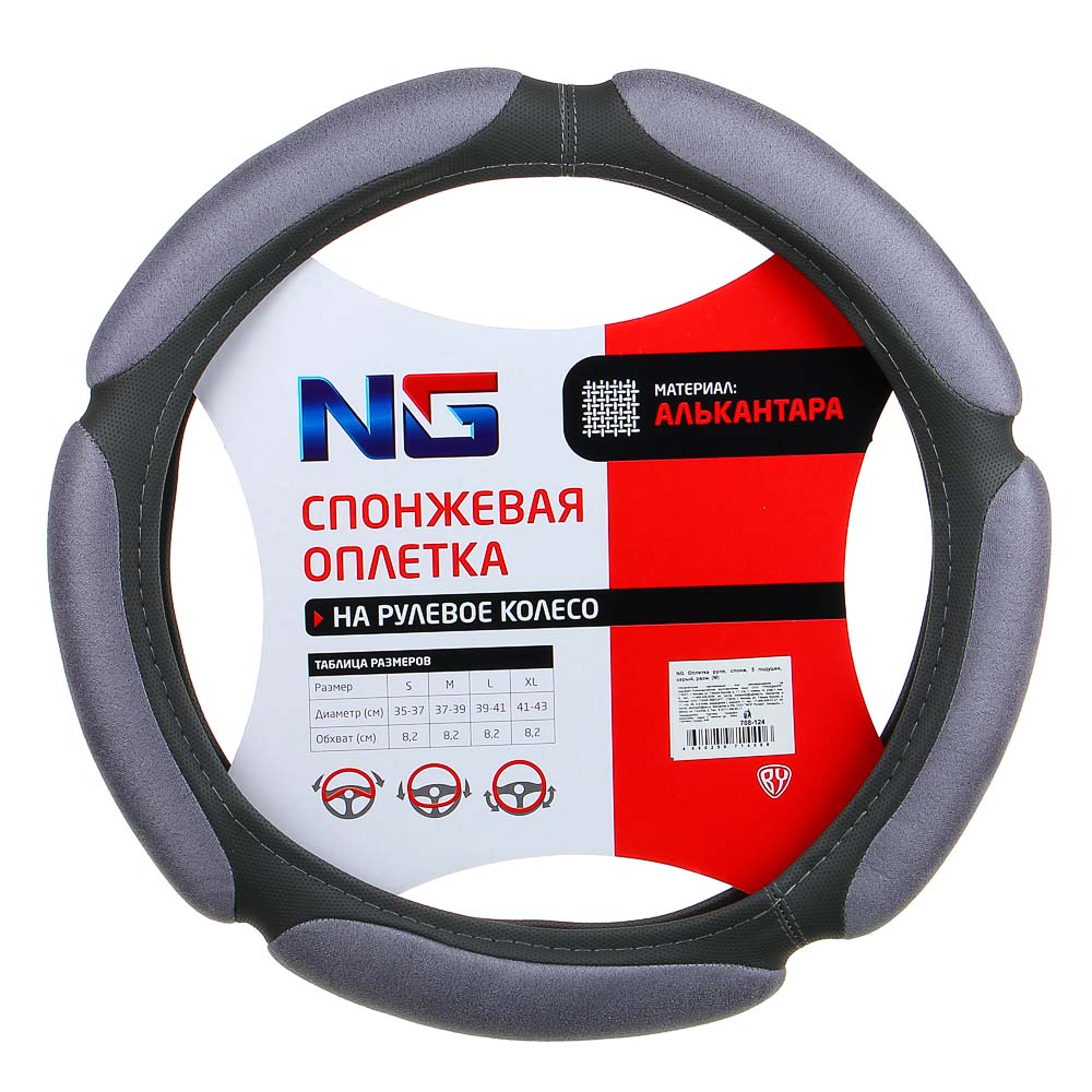 Ермак Оплетка руля, спонж, 5 подушек, серый, разм. (М)