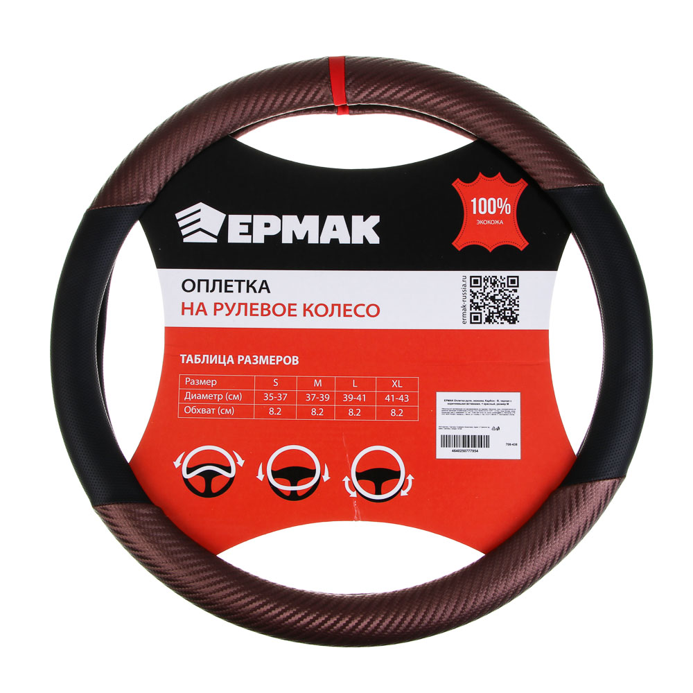 / ЕРМАК Оплетка руля, экокожа, Карбон — В, черная с коричневыми вставками, + красный, размер М