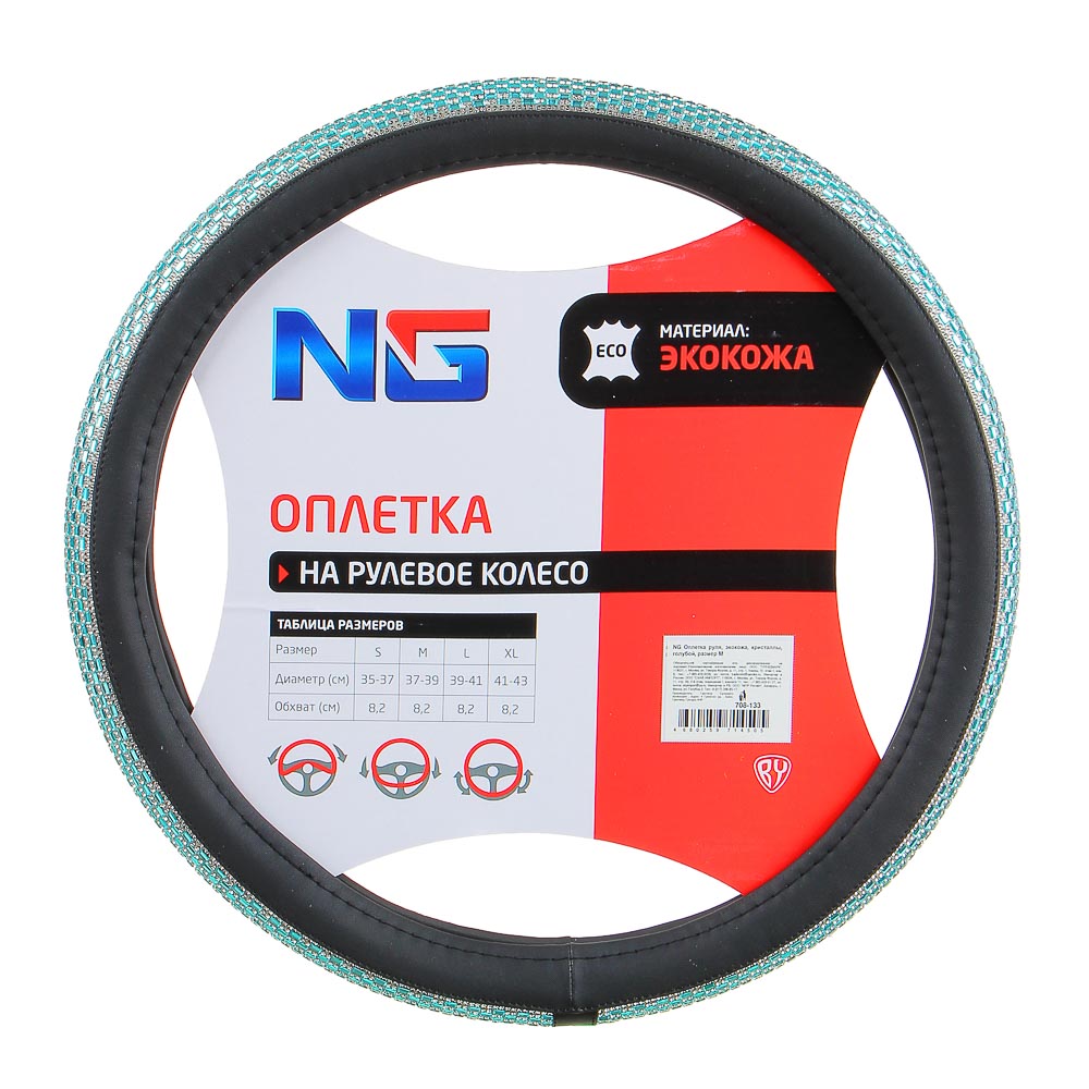 Ермак Оплетка руля, экокожа, кристаллы, голубой, размер M
