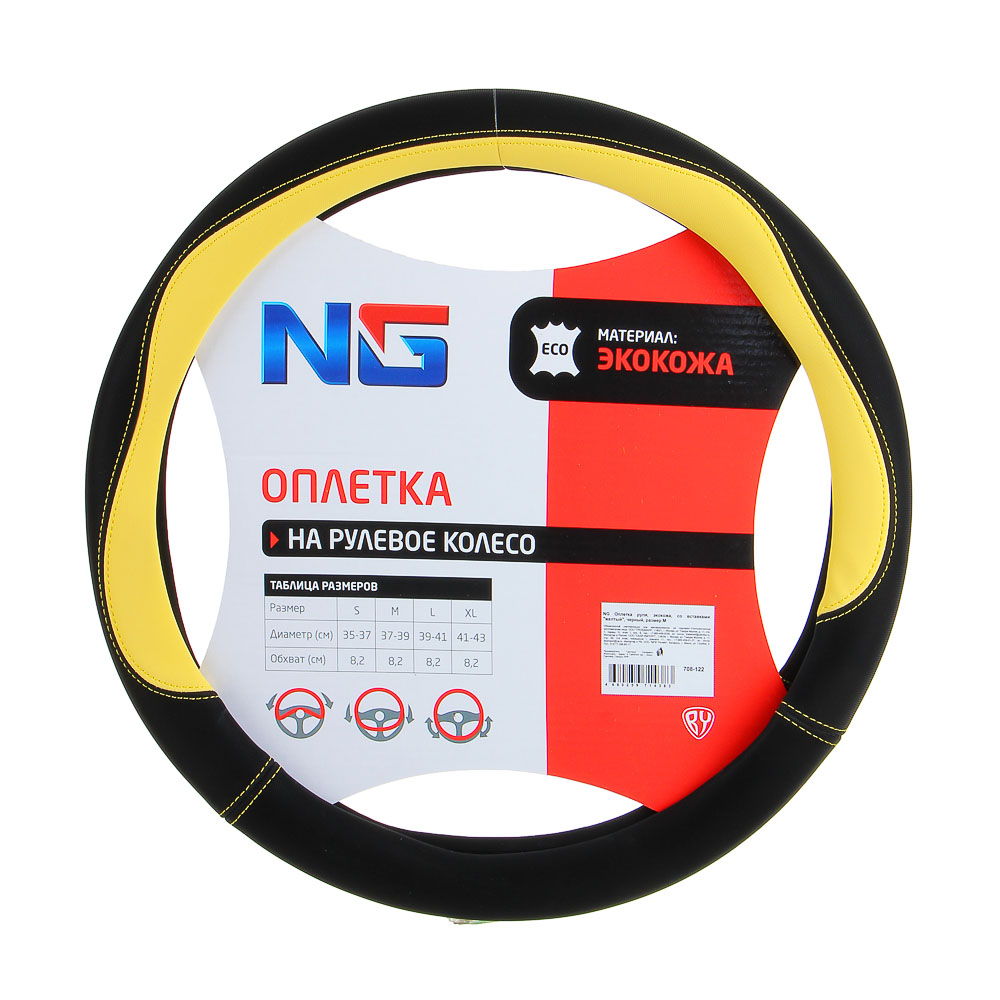 Количество товара Ермак Оплетка руля, экокожа, со вставками "желтый", черный, размер М