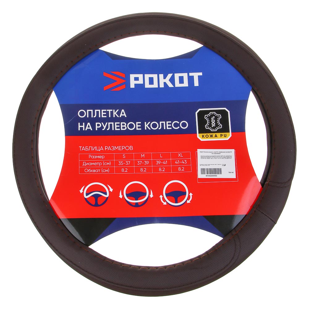 Количество товара РОКОТ Оплетка на руль, кожа PU, перфорация, размер 38 см, коричневый