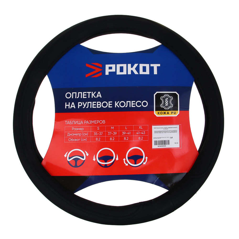 Количество товара РОКОТ Оплетка на руль, кожа PU, перфорация, размер 38 см, черный