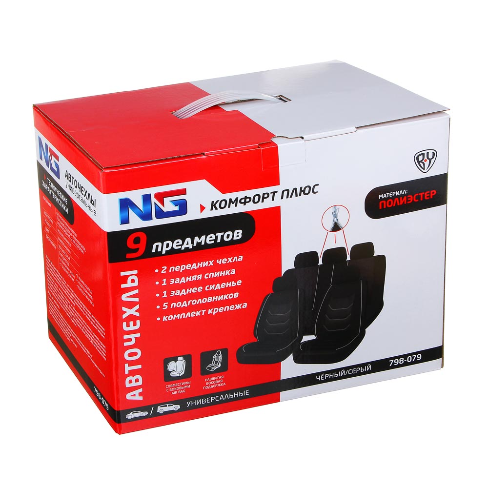 / NG Авточехлы универсальные комфорт плюс 9 предметов, MESH, полиэстер, 3 замка, Airbag, черный/серый