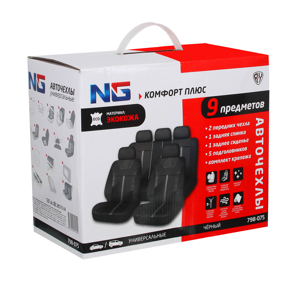 / NG Авточехлы универсальные комфорт плюс 9 предметов, MESH, экокожа, 3 замка, Airbag, черный