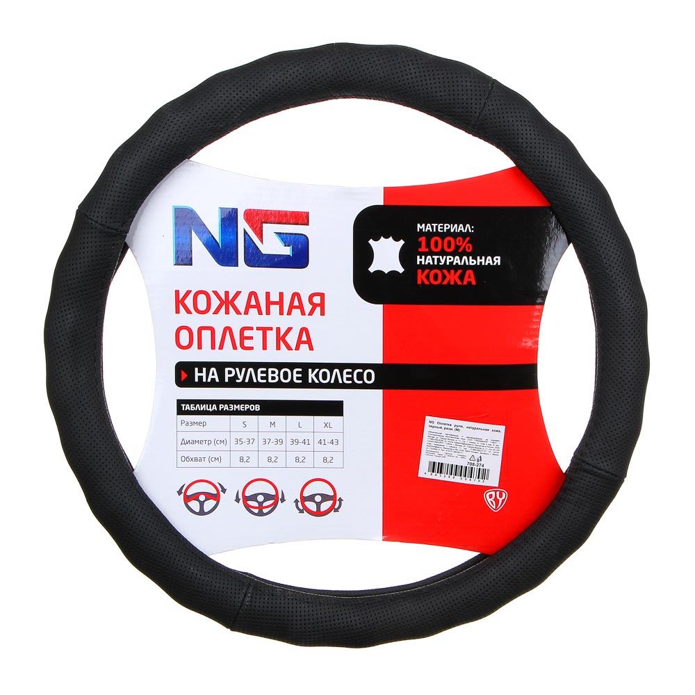 NG Оплетка руля, натуральная кожа, черный, разм. (М)