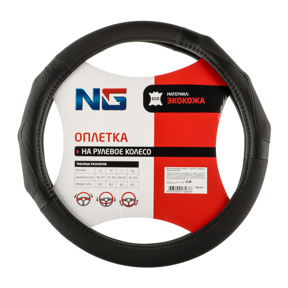 NG Оплетка руля, экокожа, с эргоном. захватом, черный, разм. (М)